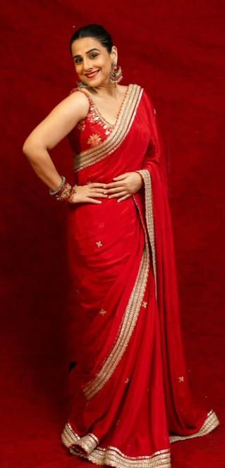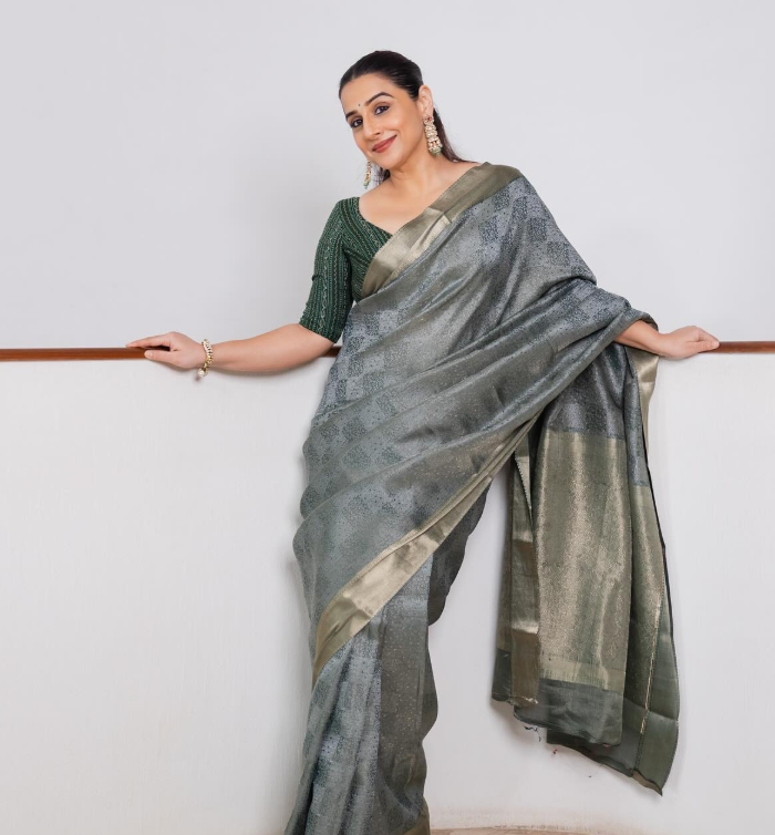 बॉलीवुड अभिनेत्री विद्या बालन मुस्कुराती हुई पोज देती हुई