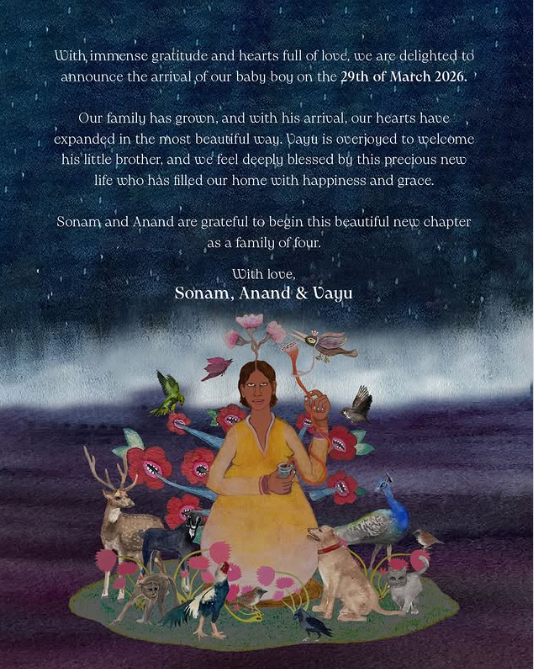 अपने नोट में सोनम ने आगे लिखा कि “हमारा परिवार अब और बड़ा हो गया है। इस नन्हे मेहमान के आने से हमारे दिल भी एक खूबसूरत तरीके से और भर गए हैं। वायु अपने छोटे भाई का स्वागत करने को लेकर बहुत उत्साहित है और हम खुद को बेहद सौभाग्यशाली महसूस कर रहे हैं। चार लोगों के परिवार के रूप में इस नए और खूबसूरत चैप्टर की शुरुआत के लिए हम भगवान के आभारी हैं।” सोनम की इस भावुक पोस्ट ने फैंस का दिल जीत लिया।